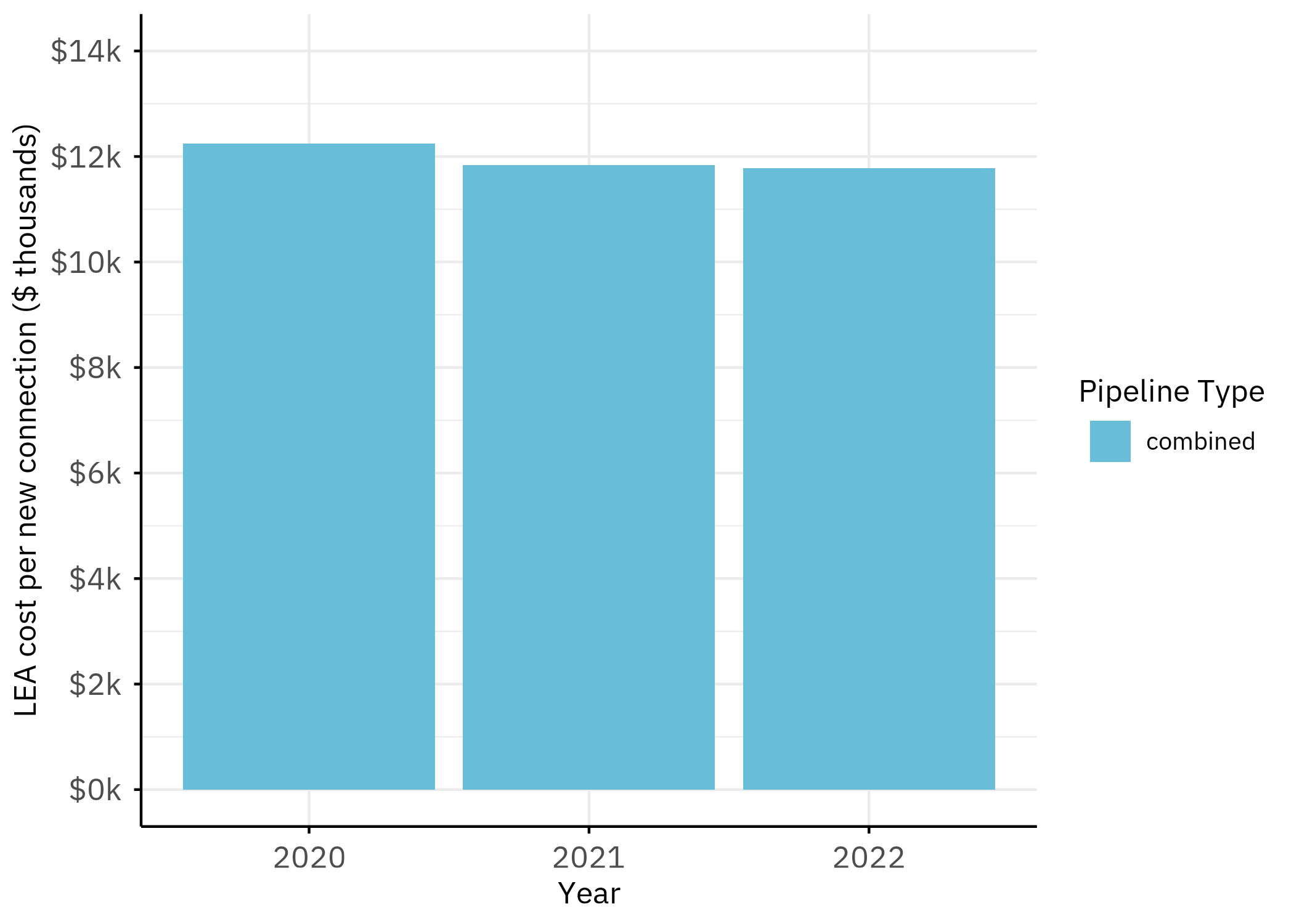 Peoples Gas’s per-connection cost has remained relatively stable over the period for which data is available, holding near $11,784 for single-family residential connections from 2020 through 2022.